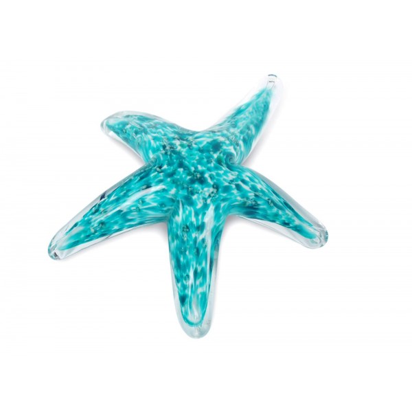 Presse-papiers et Sulfure en Verre : Etoile de mer Bleu Turquoise, Diamètre 11,5 cm