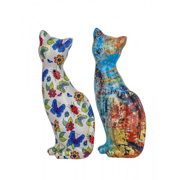 ORIGEN Set 2 Figurines Chats Design et Tags en résine 2, Collection Graffiti, H 16 cm