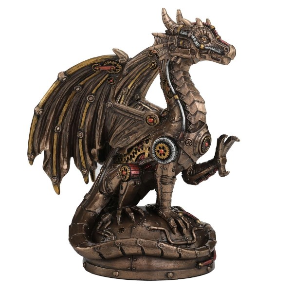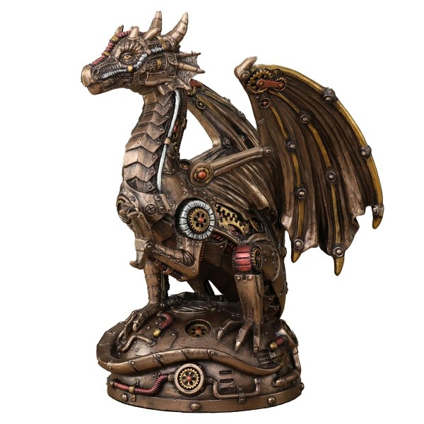 SIGNES GRIMALT Figurine Dragon Steam Punk, mécanismes et Rivets apparents en résine, Hauteur 21 cm