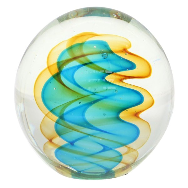 Sulfure Presse-papier abstrait, Concaténation bleu et jaune, Collection Aquaviva, diamètre 10 cm