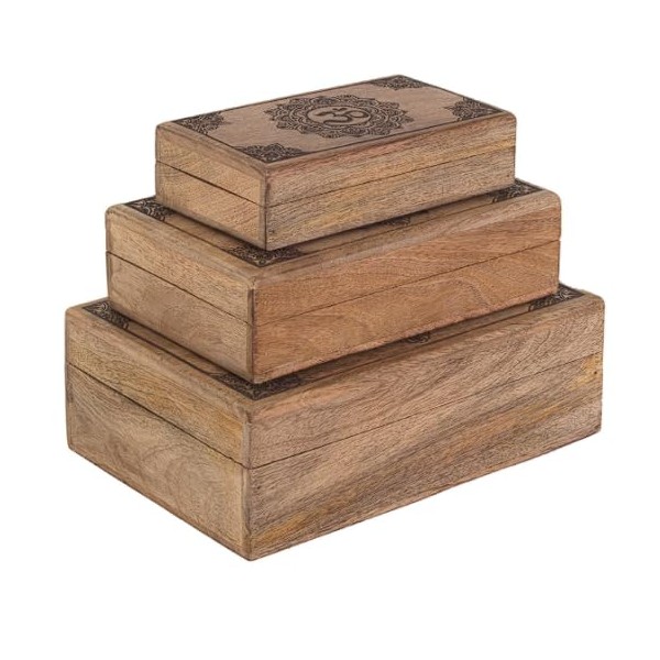 Grimalt Set de 3 Boîtes en Bois avec Gravure Mandala – Coffrets de Rangement Décoratifs – Tailles Différentes