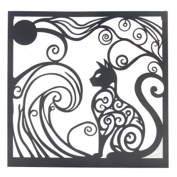 SIGNES GRIMALT Silhouette murale encadrée, Chat et végétation stylisée de style ludique et romantique, hauteur 50 cm