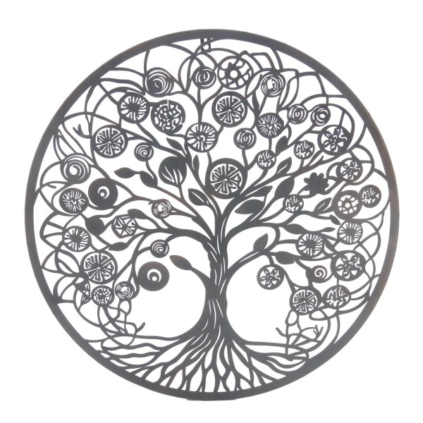 SIGNES GRIMALT Silhouette murale cerclée, Arbre de vie fleuri de style ludique et romantique, Diamètre 60 cm