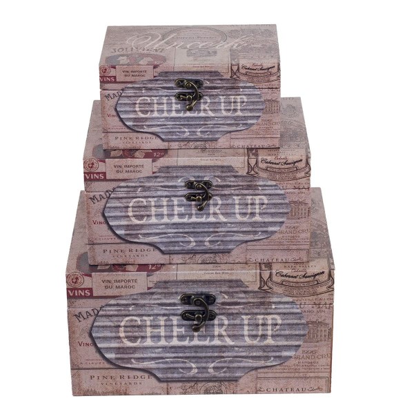 | item_name | Set 3 boites coffres vintages en bois, Modèle CHEER UP, Thème Vins du monde, 15 x 20 x 28 cm |