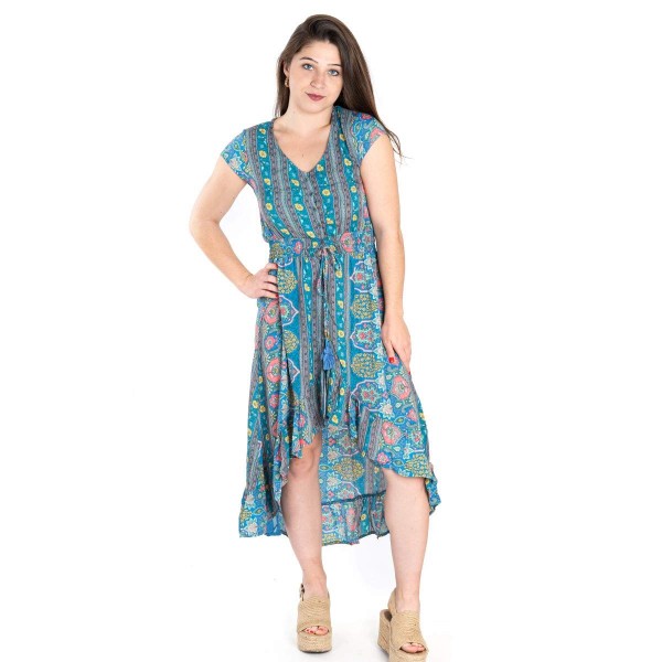 | item_name | Isla Belle Robe d'été longue Motif ethnique Bleu/rose/jaune - Multicolore - Large |