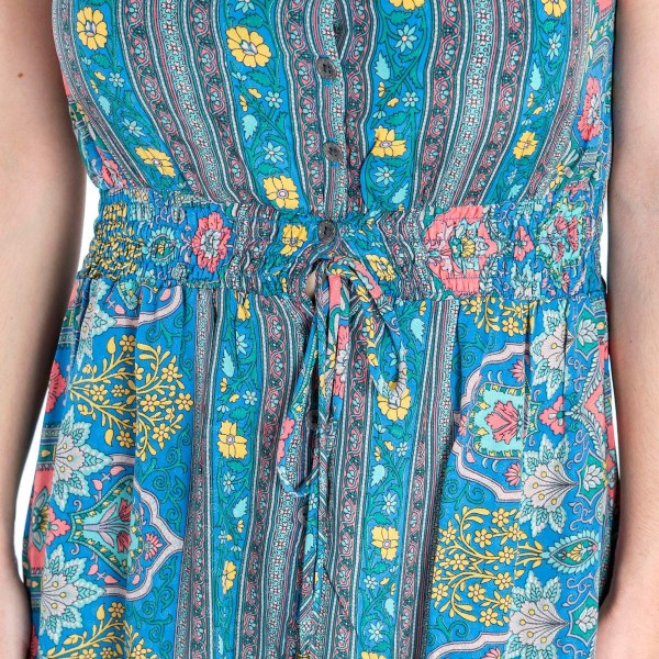 Isla Belle Robe d'été longue Motif ethnique Bleu/rose/jaune - Multicolore - Large