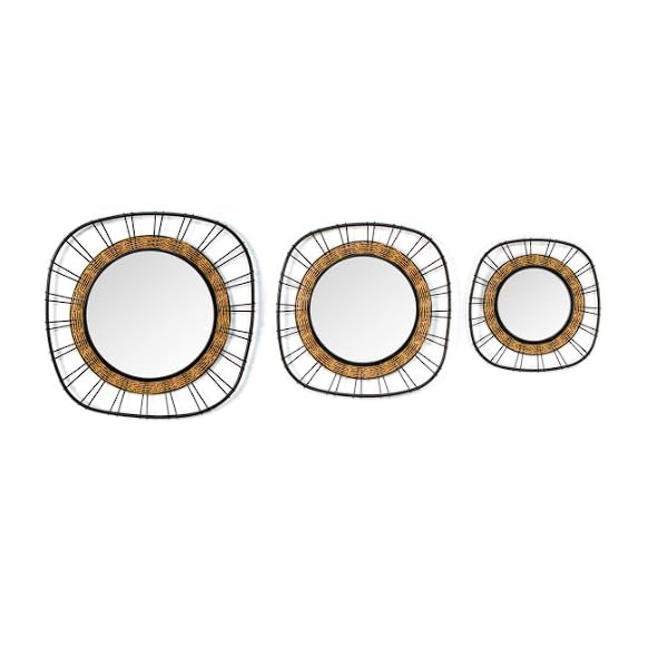 SIGNES GRIMALT Set 3 miroirs Design, Silhouette Originale métal et Bois, encadrement Bois Massif Exotique