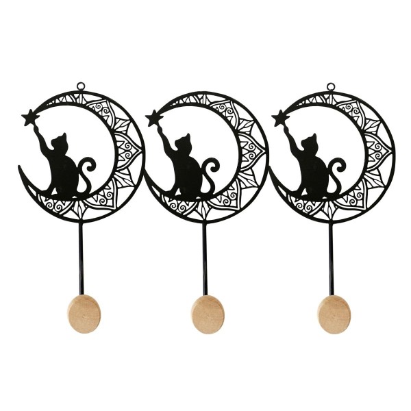 SIGNES GRIMALT Patère Portemanteau 3 pommeaux, Chats et lunes en métal, pommeaux en résine, L 38 cm