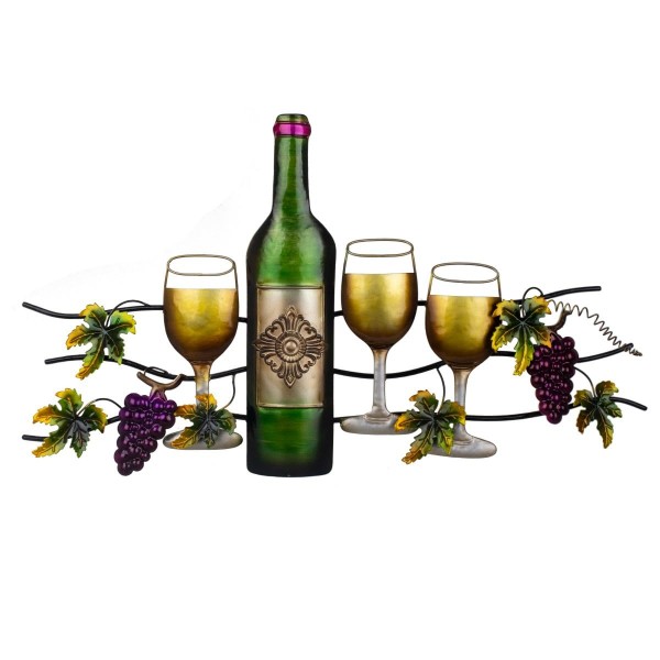 SIGNES GRIMALT Silhouette murale en métal, bouteille de vin blanc, 3 verre et vignes décoratives, longueur 74 cm