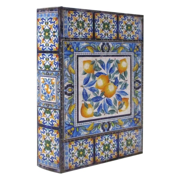 SIGNES GRIMALT Boite livre en bois MDF et polyester, Motif Citrons et carreaux de ciment rétros de cuisine, hauteur 17 cm