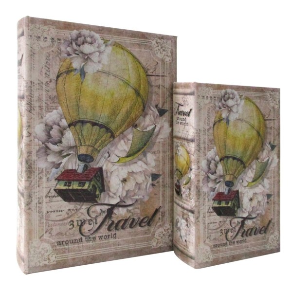 SIGNES GRIMALT Set 2 Boites livres en bois MDF et polyester, Motif Montgolfière ancienne jaune et voyage, hauteur 27 cm (Grande)