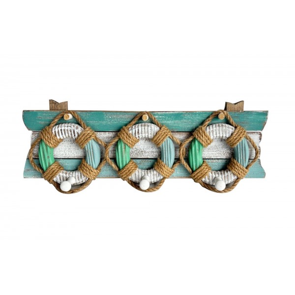 SIGNES GRIMALT Patères-Portemanteaux Trois ouées en bois, 3 Patères boutons, Bleu et Marron, Longueur 45 cm