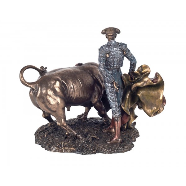 SIGNES GRIMALT Figurine Corrida Résine : Taureau et Torero, Finition Antic Line, Longueur 28 cm