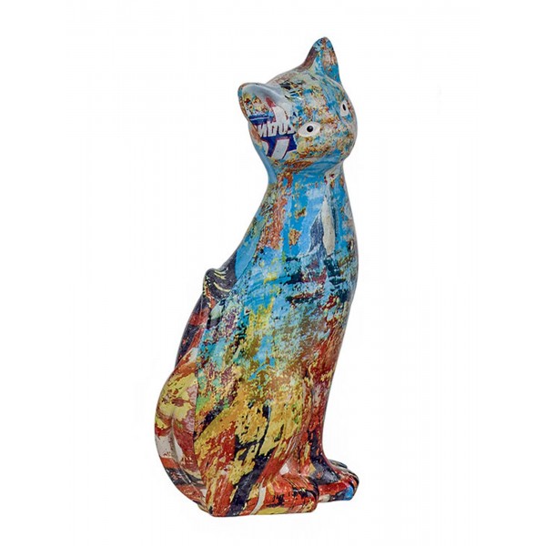 SIGNES GRIMALT Figurine Chat Design Multicolore, Motif rétro et Floral, Hauteur 12,5 cm