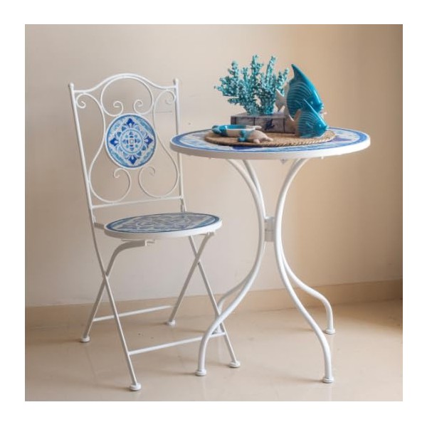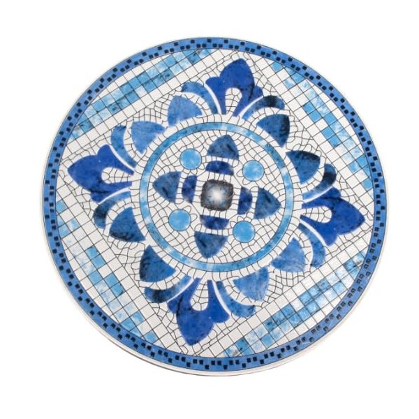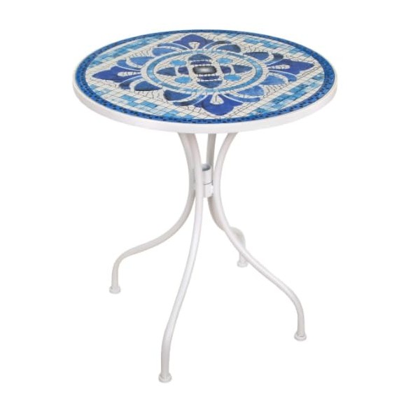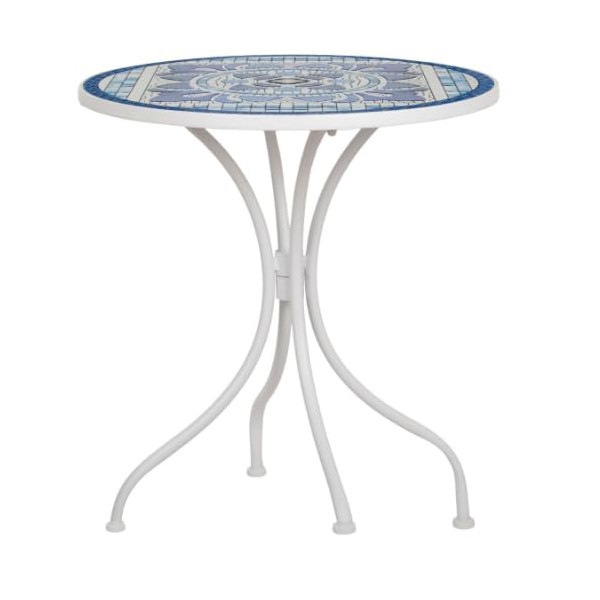 SIGNES GRIMALT Table Mosaïque Ronde 61 cm – Métal Blanc et Céramique Bleue – Table Intérieur/Extérieur 70 cm