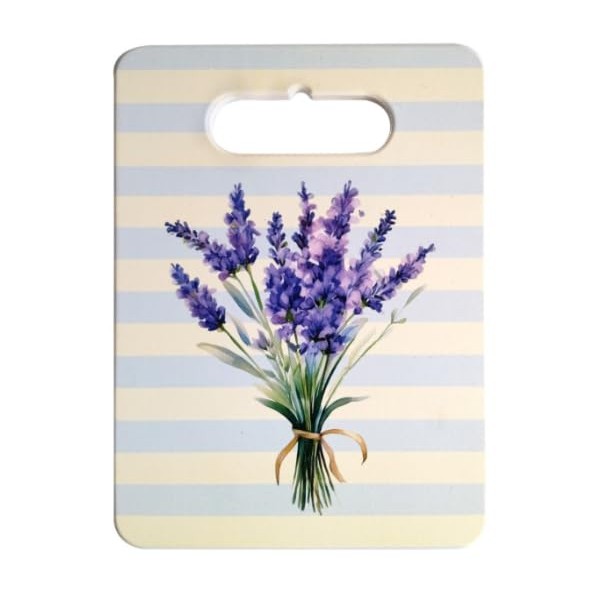 Planche à Découper en Céramique Motif Bouquet de Lavande – Série de 4 – 24 x 18 cm – Décor Provence Rayures Bleu & Beige