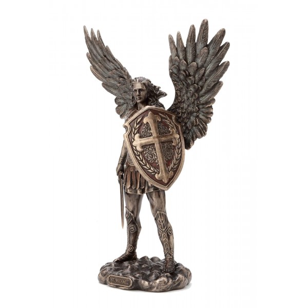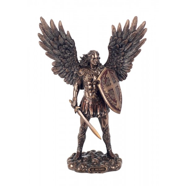 happyDko Statuette résine Antic Line : L'archange Saint Michel, Bouclier et Glaive, H 28 cm