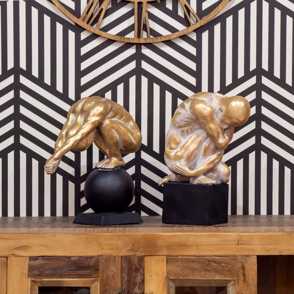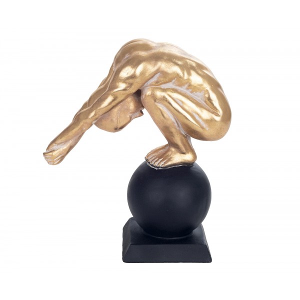 ORIGEN Statue Design Athlète Plongeur Boule XL, Modèle Doré et Patine Gris, H 30 cm