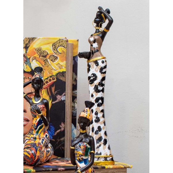 SIGNES GRIMALT Statuette Africaine 2, Robe léopard, Collection Zambia, H 28 cm