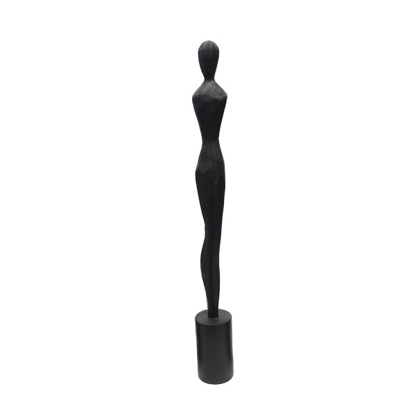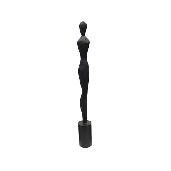 SIGNES GRIMALT Grande Statue Femme Design Noire à la Silhouette longiligne sur Socle, Composition Bois et Hauteur 77 cm
