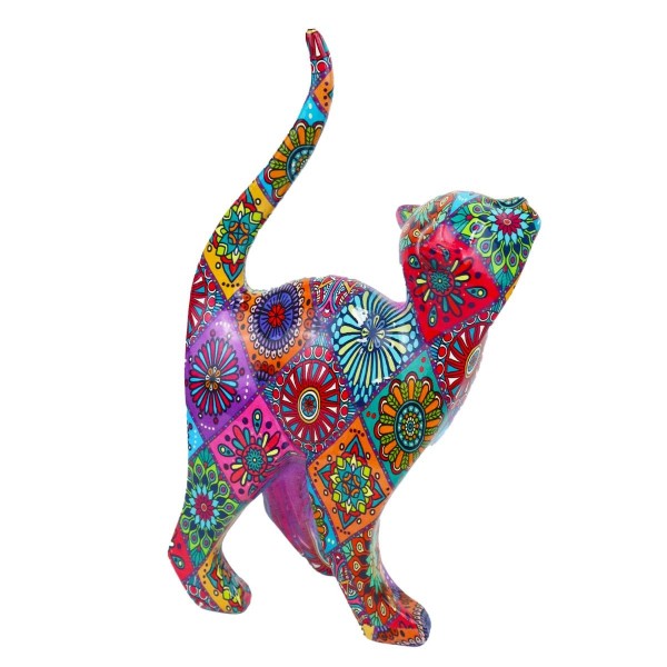 SIGNES GRIMALT Grande Statue Chat en résine, Mandalas Floraux bigarrés, Collection AJANTA, Hauteur 31 cm