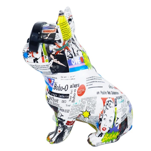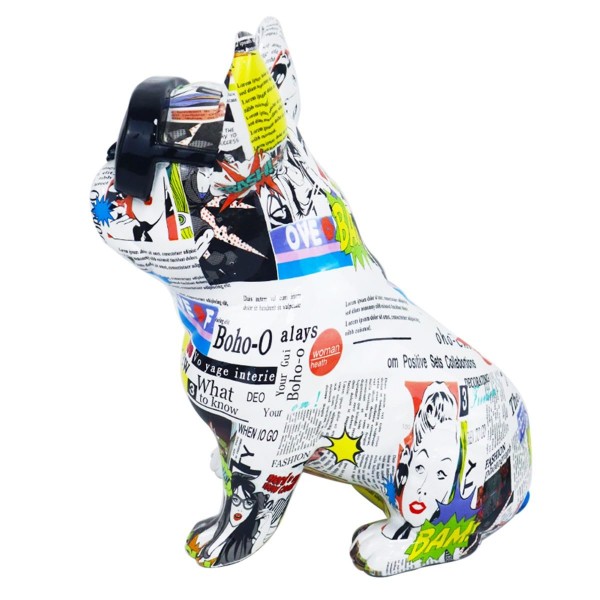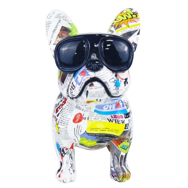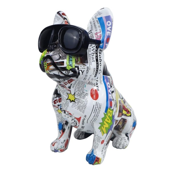 SIGNES GRIMALT Grande Statue Bouledogue français popstars, Lunette de Soleil et Illustrations Graphiques, Hauteur 34 cm