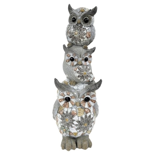 SIGNES GRIMALT Statue Totem Trois Chouettes en Pierre de magnésie, Intérieur et extérieur, Terrasse et Jardin, Hauteur 35 cm