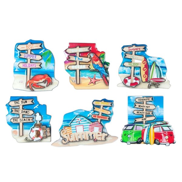 | item_name | Set 6 magnets Frigo aimantés, Plage, Surf et Bord de Mer, H 6,5 cm |
