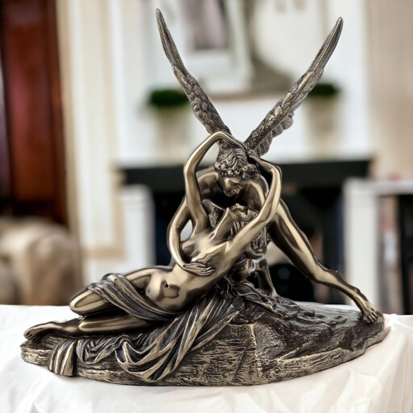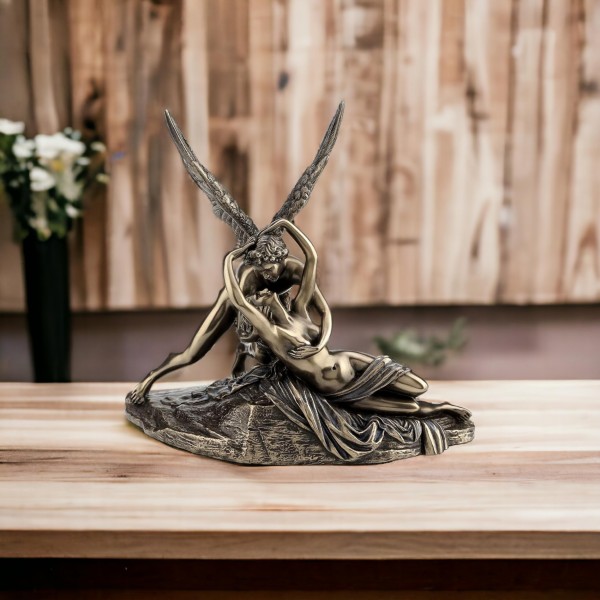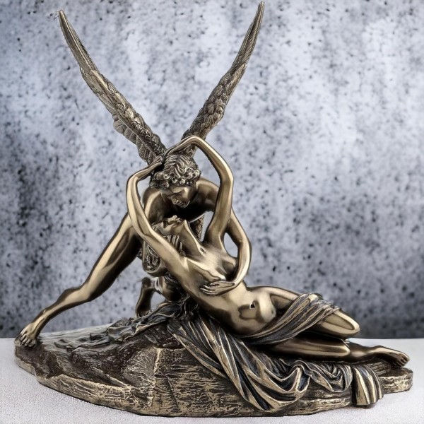 Statuette Couple Nu : Psyché et Cupidon, Le baiser de l'Amour (Antonio Canova), L 20 cm