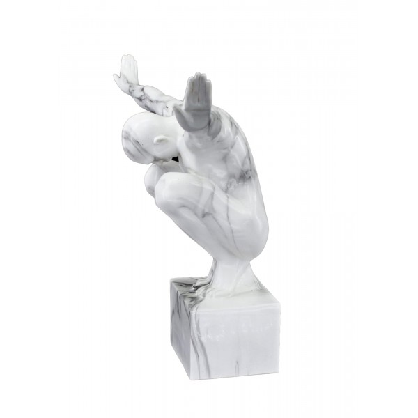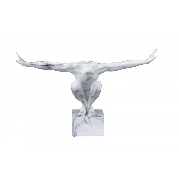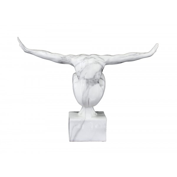 ORIGEN Statuette Résine contemporaine Homme : Equilibre, Marbré Blanc, L 50 cm