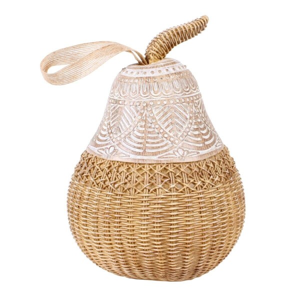 Figurine Poire décorative en résine et Aspect rotin, Collection ORGANIK, H 23 cm
