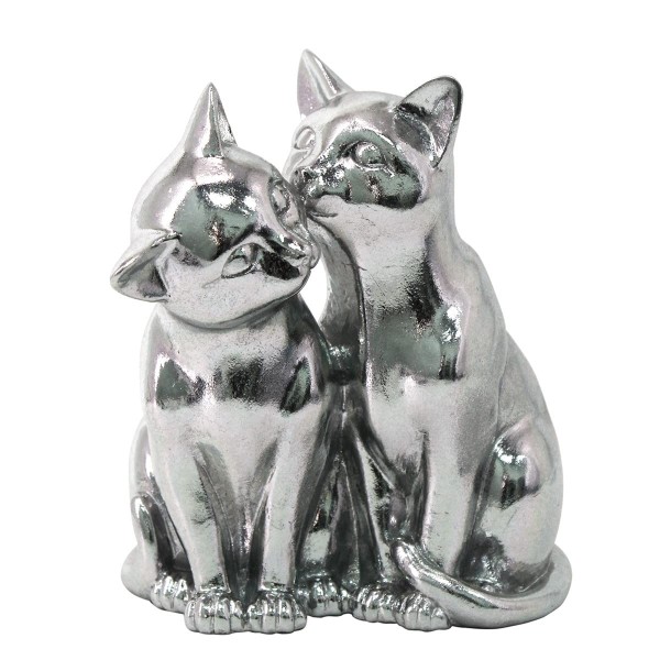 | item_name | Grande Figurine Deux Chats contemporains, Patine Argent, H 20 cm |