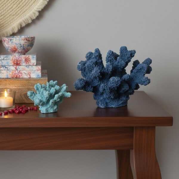 Décoration à poser, Corail Branche Bleu, L 18 cm