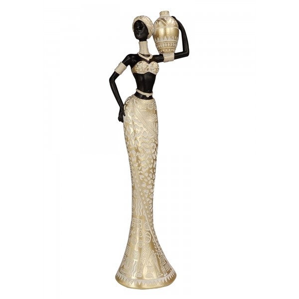 Statuette Africaine élancée, Robe dorée en Tons clairs et Jarre, Collection KAEWA, H 33 cm