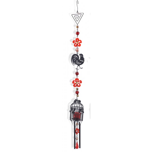 Suspension Bougeoir Cage, Coq, Rouge, H 100
