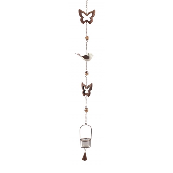 Suspension Shabby Chic Fer : 1 Oiseau 2 Papillons, H 115 cm