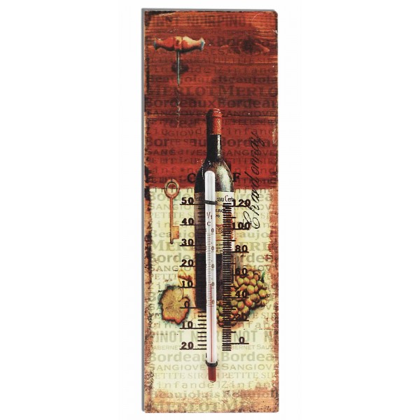 Petit thermomètre en métal sur le thème du vin, hauteur 25 cm.