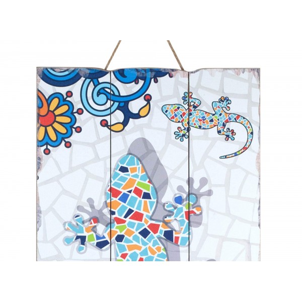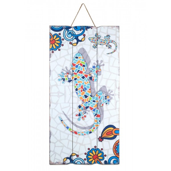 G&S Plaque Bois Vintage : Gecko Effet Mosaïques, H 60 cm