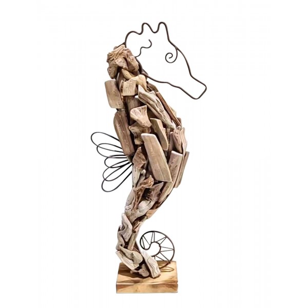SIGNES GRIMALT Décoration Marine : Grand Hippocampe, Bois flotté et Structure métal sur Socle, Hauteur 44 cm