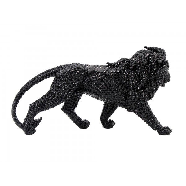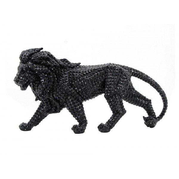 SGRIMALT Statuette Lion XL Noir, Collection Black Rock, Polyrésine Semi-Brillante, L 45 cm