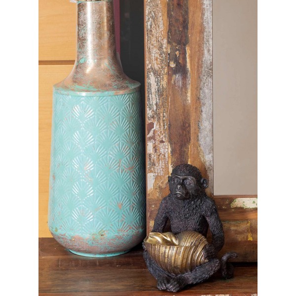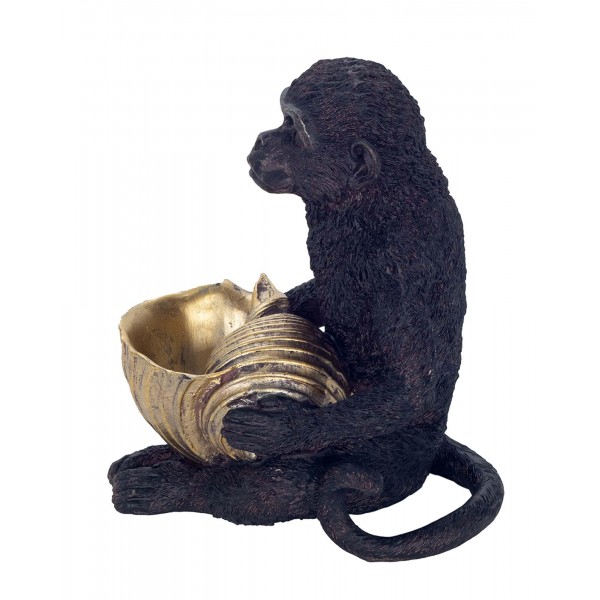 SIGNES GRIMALT Statuette Résine : Singe Noir et Coupe Coquillage doré, Modèle Black Jungle, H 17 cm