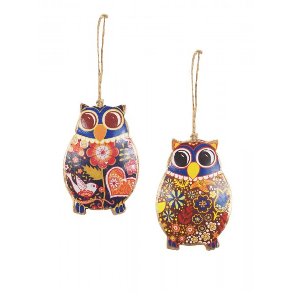 Set 2 chouettes à suspendre, Mod 1, H 9 cm
