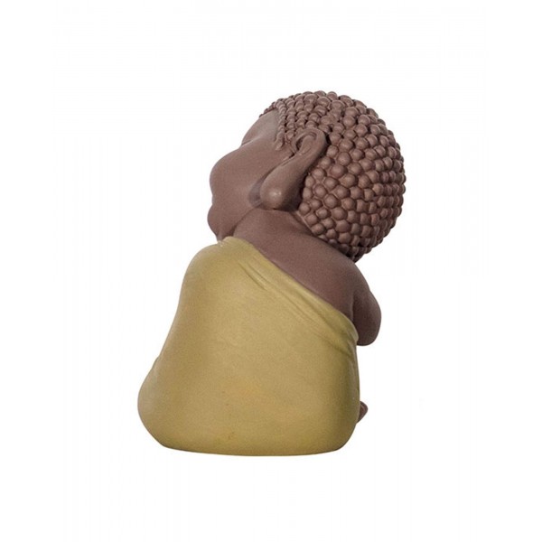 G&S Bouddha Jaune Assis, Tête sur Le Genoux. Coll Méditation, H 11 cm