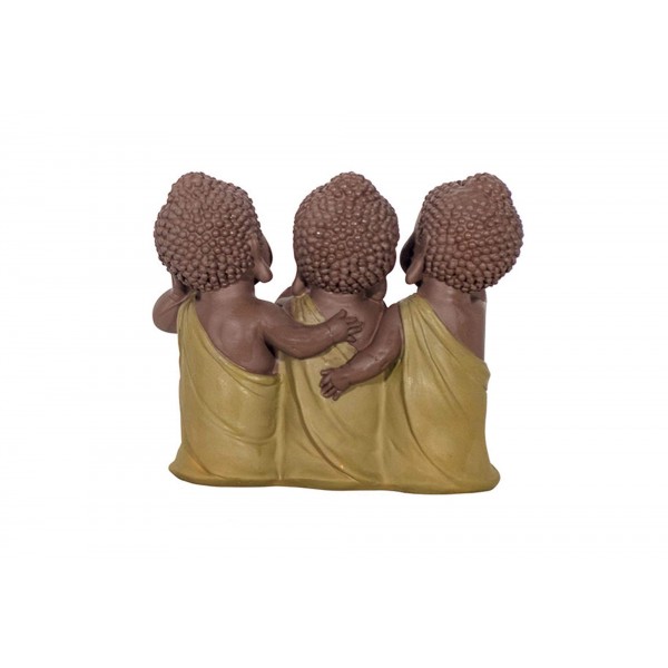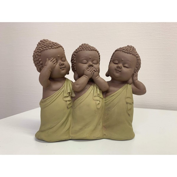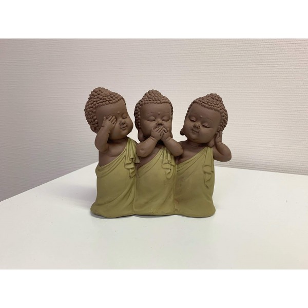 G&S Figurine 3 Bouddhas de la Sagesse, Vert Olive. Coll Méditation, H 13 cm