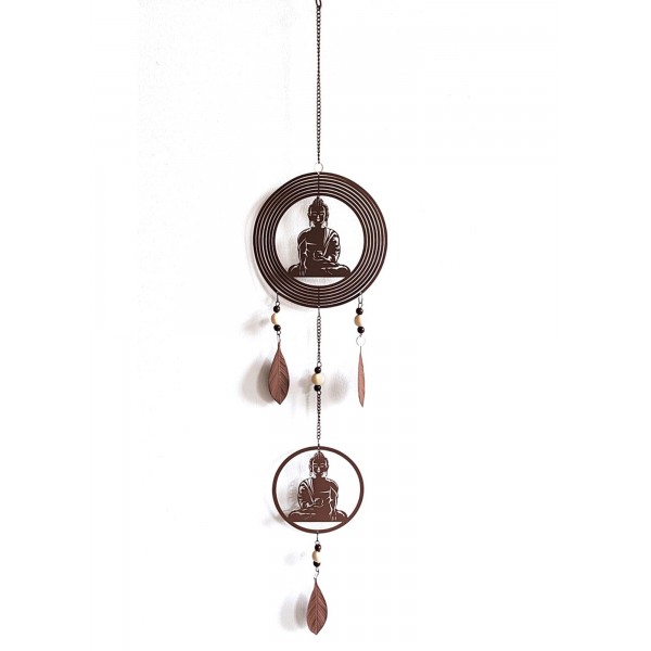 Grande Suspension décorative Bouddha, Cercles et Feuilles, 100% métal, H 90 cm