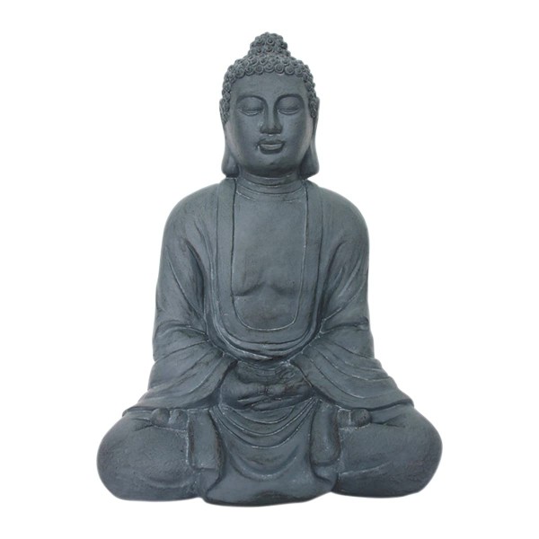 Statue Très Grand Bouddha assis en Résine, Patine Grise, H 80 cm