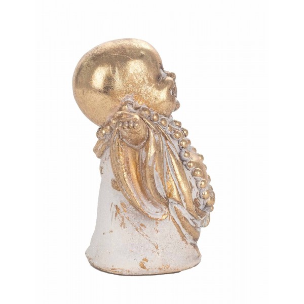 ORIGEN Déco Zen et Spiritualité : Bouddha Rieur Porte-Bonheur, Doré et Blanc, H 15 cm