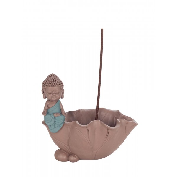 Porte-Encens Baby Zen, Figurine Bouddha Vert sur Lotus, Longueur 15,50 cm