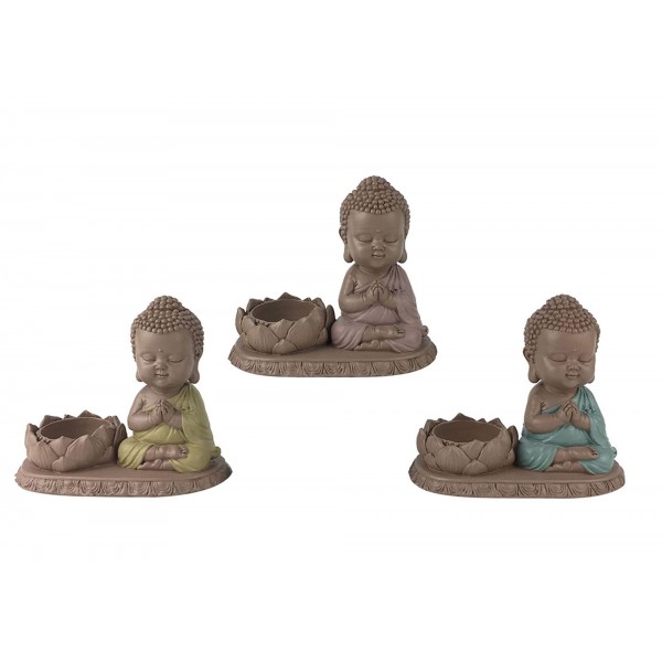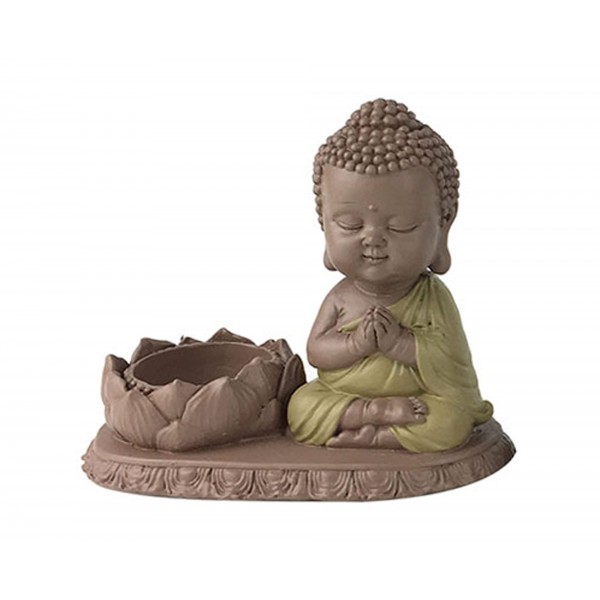 Mini Bouddha Vert et Bougeoir Fleur de Lotus, Collection Baby Zen, L 13 cm