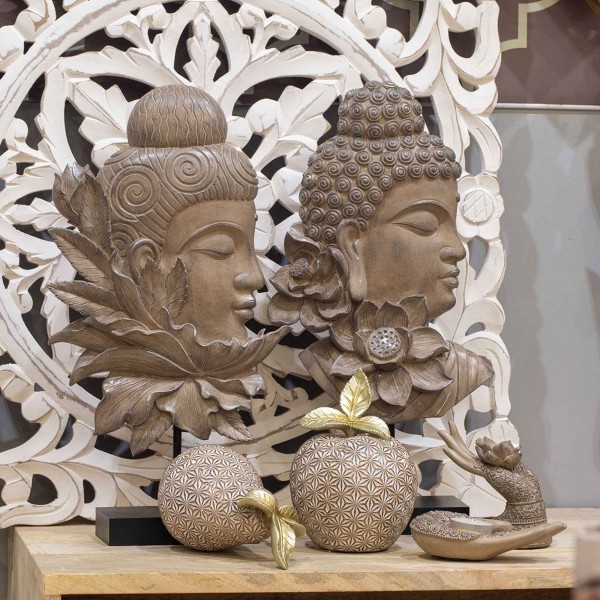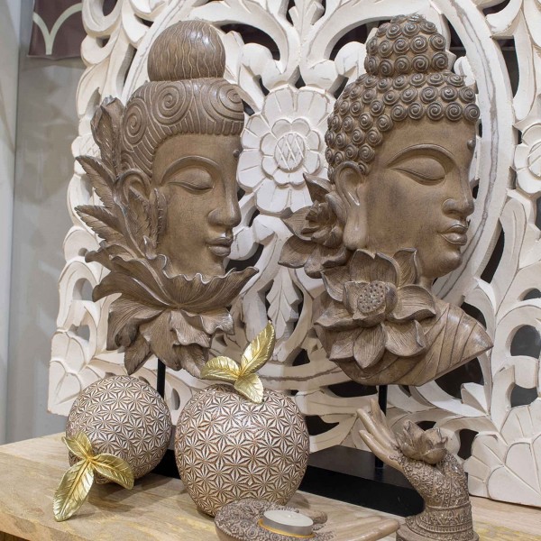 SIGNES GRIMALT Figurine Zen en résine : Tête de Bouddha et Fleur Exotique, Hauteur 42 cm
